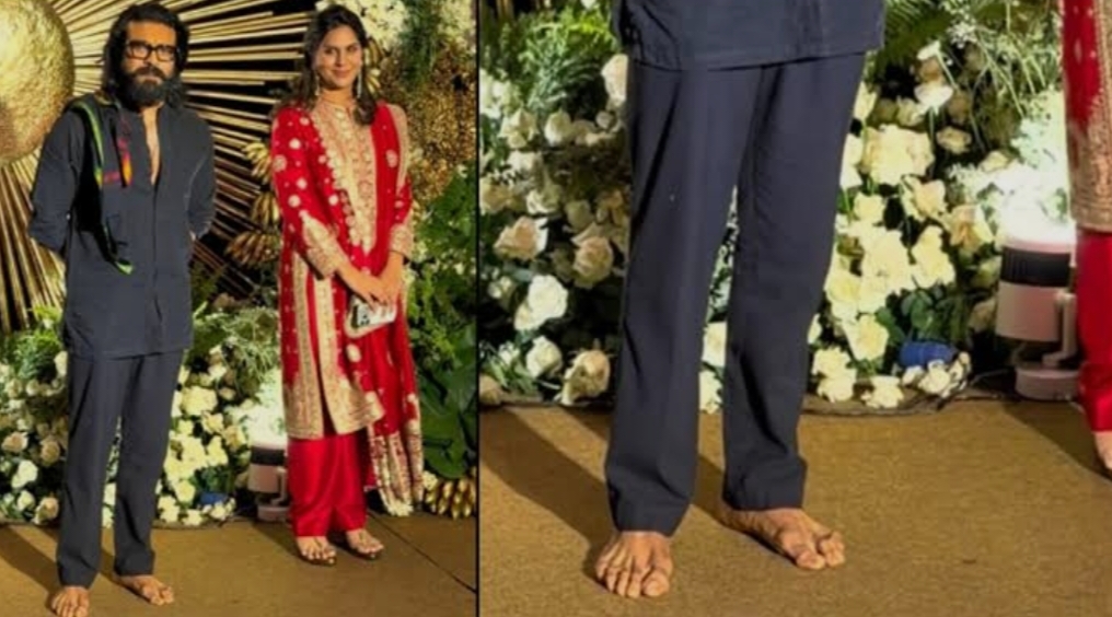 তারকাখচিত আসরে ব্যতিক্রমী উপস্থিতি, বিজয়-রশ্মিকার অনুষ্ঠানে খালি পায়ে রামচরণ
